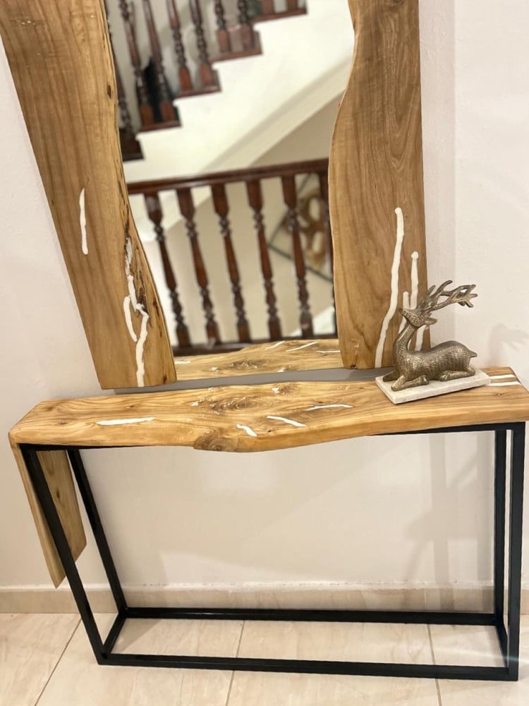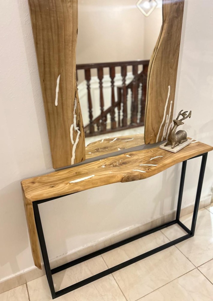 مدخل مكون من مرايا طول ١٢٧سم والعرض ٦٩ سم وكونسول العرض م والارتفاع ٨٤ سم من خشب اللبخ